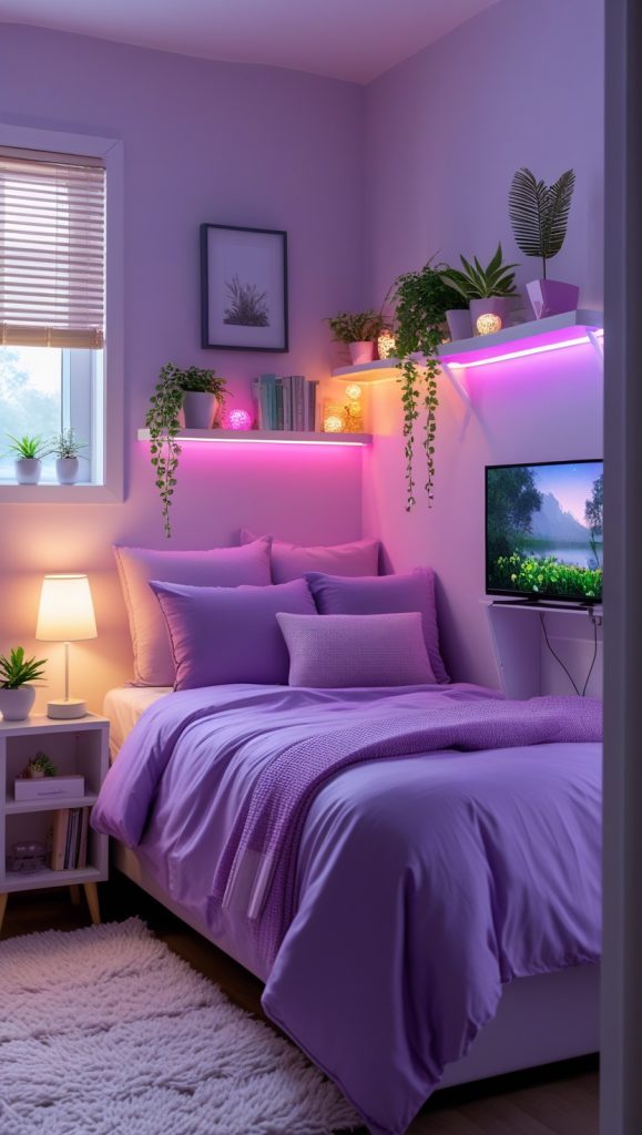 For smaller bedrooms, multifunctional furniture is a must. Loft beds with built-in desks, storage ottomans, and wall-mounted shelves are perfect for saving space while keeping the room organized. These practical Teen Girl Bedroom Ideas 2025 ensure the room stays clutter-free and stylish.