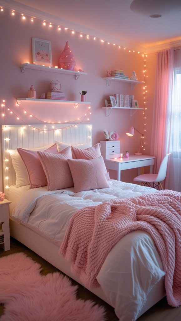 One of the top Teen Girl Bedroom Ideas 2025 is incorporating cozy textures. Think plush rugs, fluffy throw blankets, and oversized pillows. Layering soft fabrics in neutral tones or pastel shades can instantly make the room feel warm and inviting. Add a canopy bed or string lights for a dreamy, Instagram-worthy touch.